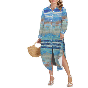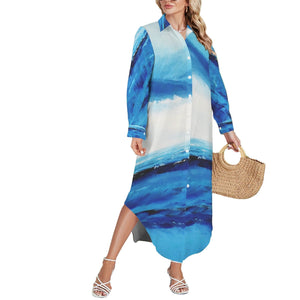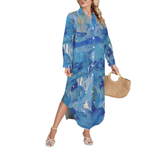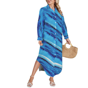 BLUE SWIRLS Swimsuit Cover Up Dress Blouse Botton Down Shirt | JSFA