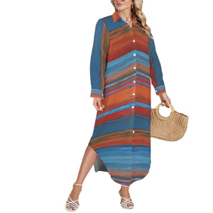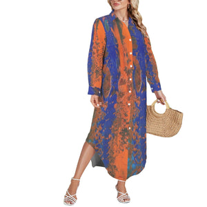ORANGE BLUE Swimsuit Cover Up Dress Blouse Botton Down Shirt | JSFA