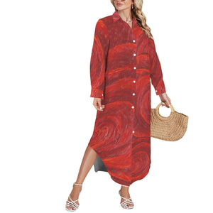 RED ROSES Swimsuit Cover Up Dress Blouse Botton Down Shirt | JSFA