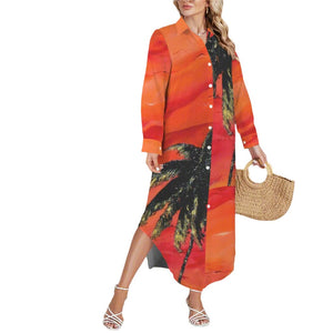 PALM TREE Swimsuit Cover Up Dress Blouse Botton Down Shirt | JSFA