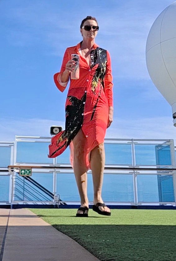 "This cover up makes you feel beautiful. Love the softness of the material and the flow when you walk. Feels and looks great!"